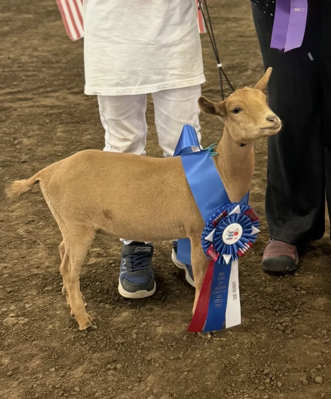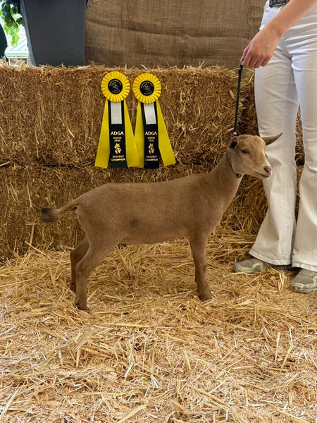 Every time Rose steps into the show ring, she shines. It’s not just her structure that makes her stand out it’s the way she carries herself, almost as if she knows she belongs in the spotlight. With her elegance, strength, and presence, Rose is the kind of doe who demands attention and makes showing her a true joy.